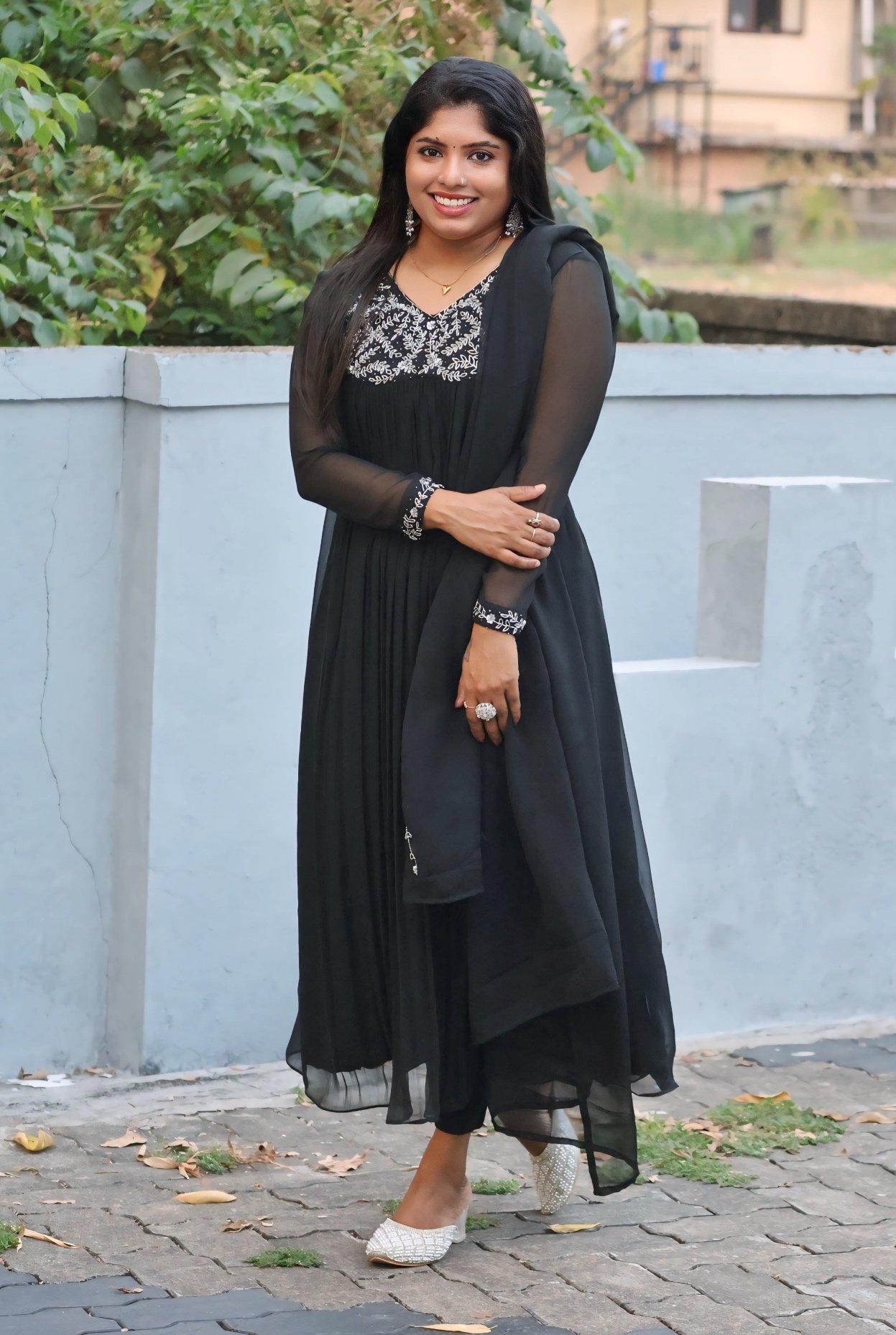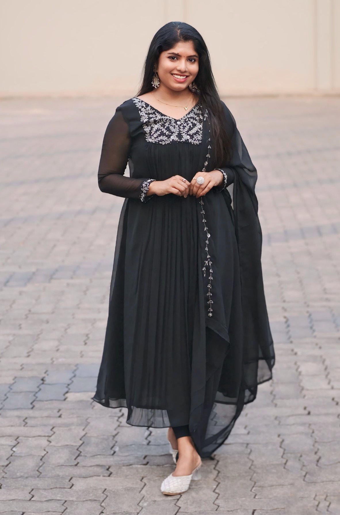 Handworked black top with dupatta