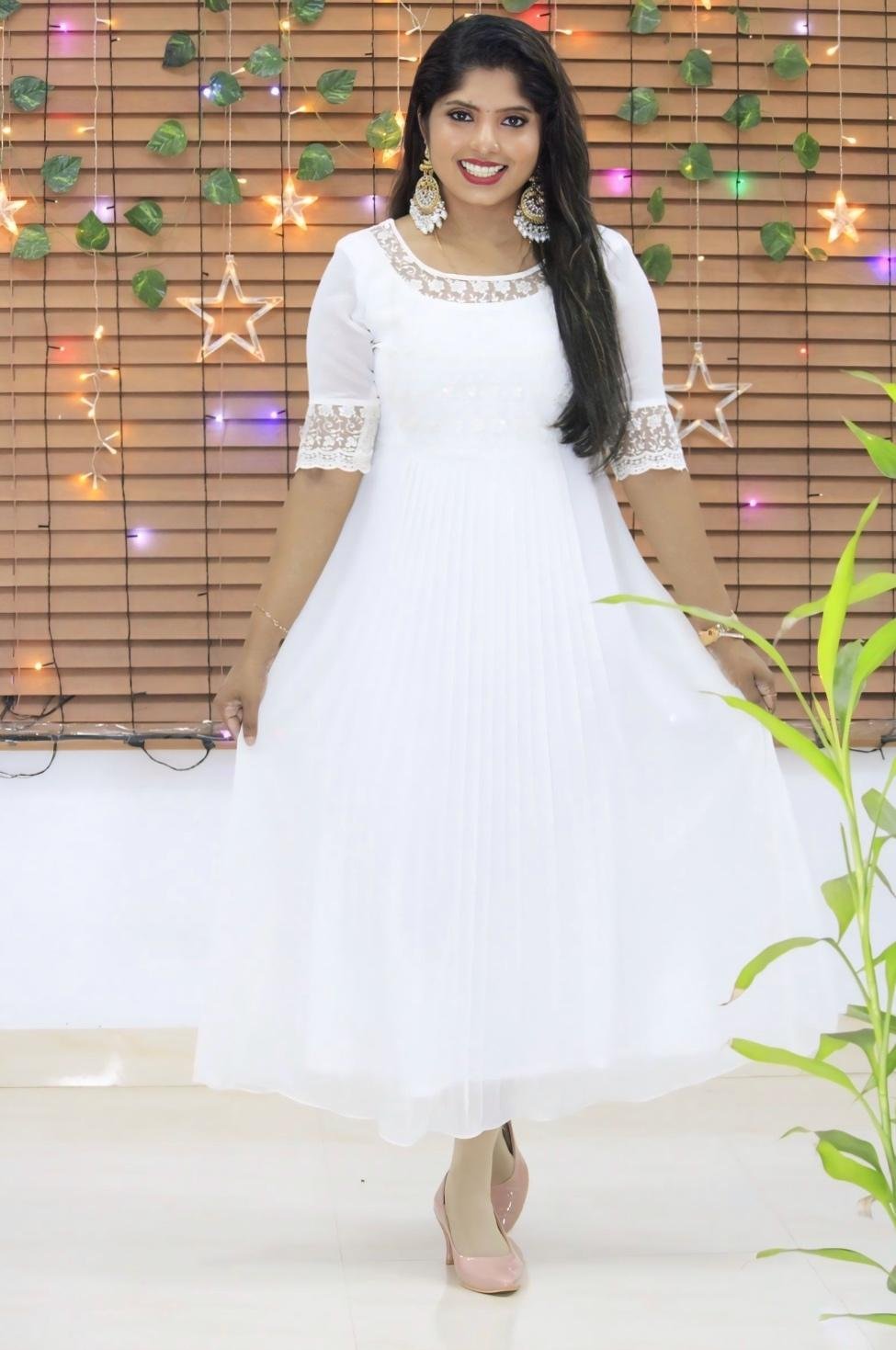 Celebrate the festive season in style with this Xmas special white kurti. Crafted from soft, elegant fabric, it features a beautifully embroidered net patch on the yoke and sleeves, adding a touch of sparkle and sophistication. The pleated yoke design enhances the silhouette, giving it a graceful festive charm. Perfect for Christmas gatherings and elegant daytime events.
