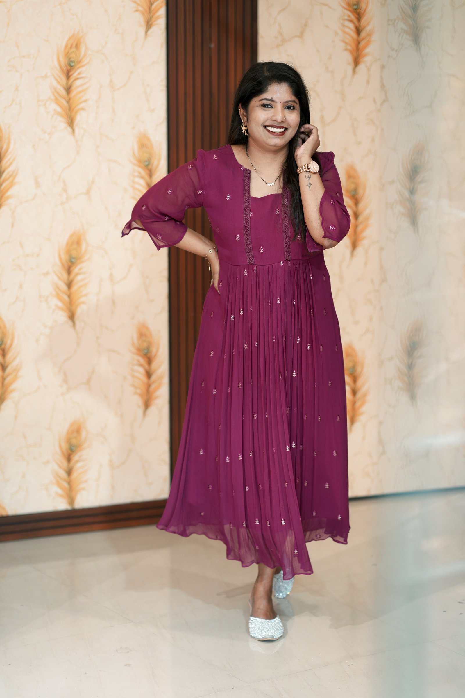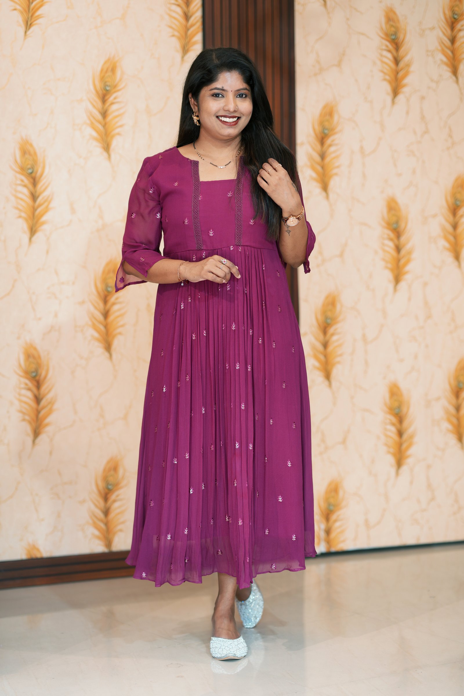 This dyable viscose georgette pattern-stitched kurti is designed for versatility and effortless elegance. Crafted in soft, flowy viscose georgette, it features a beautifully structured stitched pattern that gives a graceful fall and flattering fit.