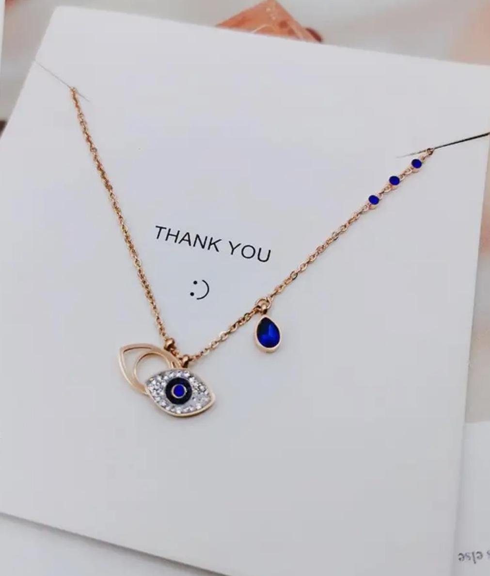 Anti tarnish evil eye pendant and neck chain