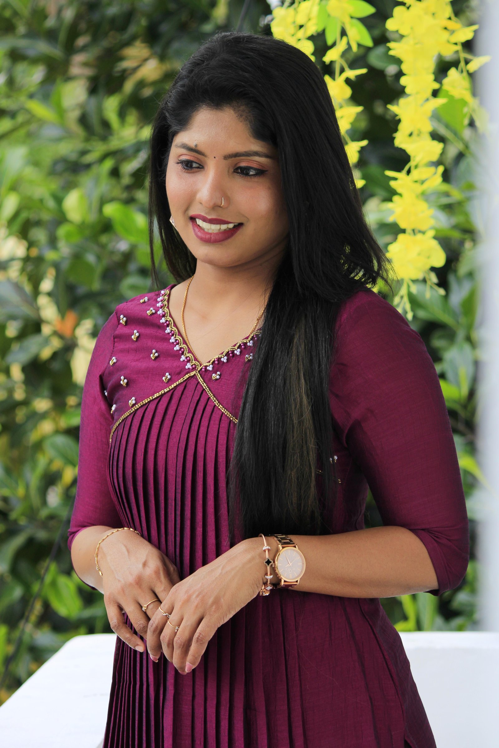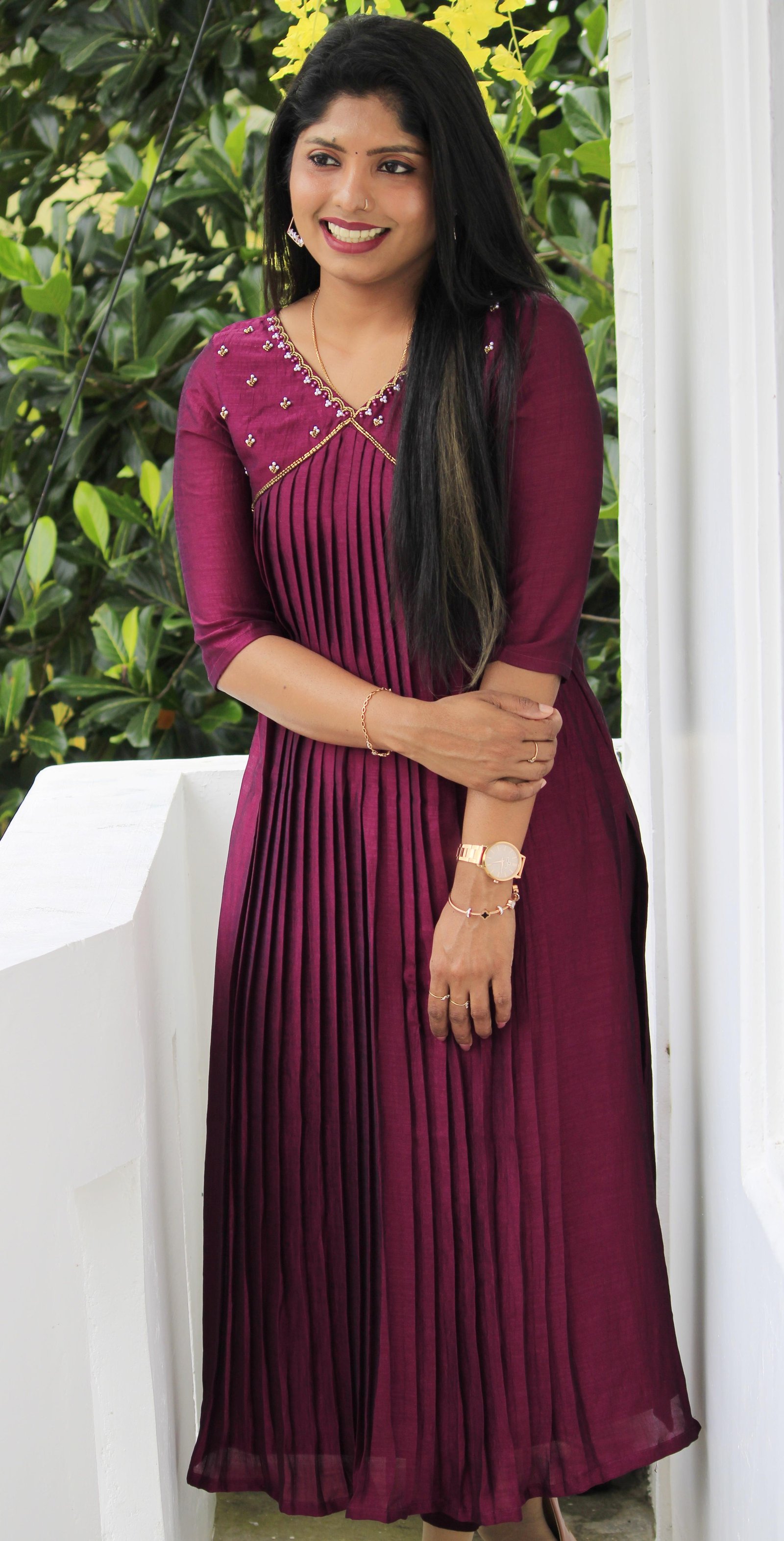 Step into elegance with this Badri silk pleated slit kurti, featuring a flattering Alia cut that enhances your silhouette. Designed with fine pleats for added grace and movement, it offers a perfect balance of traditional charm and modern flair.