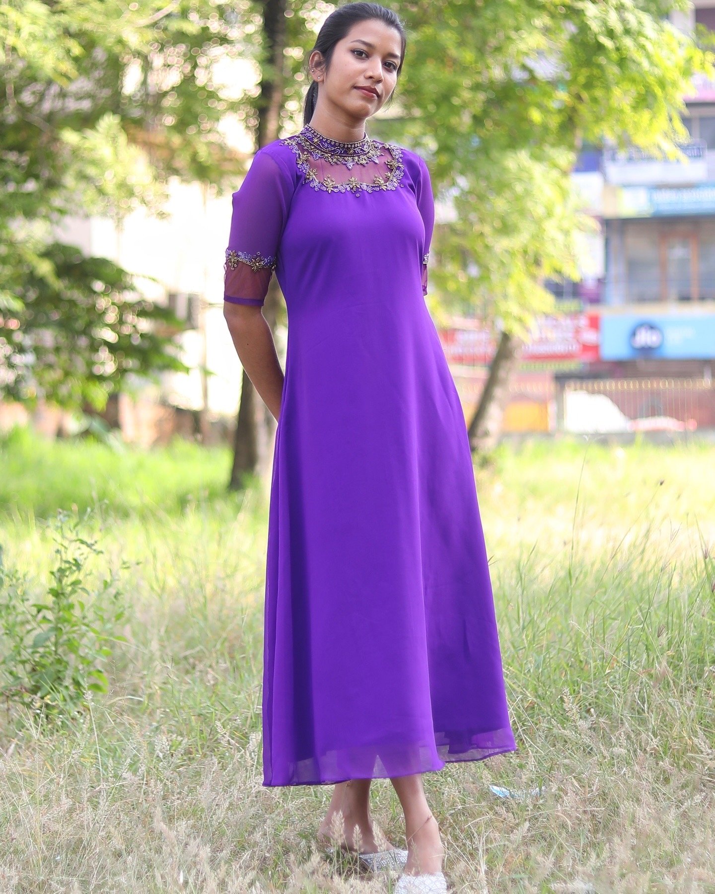 Make a graceful statement with this elegant party wear kurti, designed with a classic jewel neckline and enriched with intricate handwork. Crafted from premium-quality fabric, this kurti features delicate embellishments that add a subtle sparkle, perfect for festive evenings and special occasions. The refined silhouette ensures a flattering fit, while the detailed craftsmanship reflects timeless elegance and luxury. Pair it with statement earrings and heels for a confident, sophisticated look.