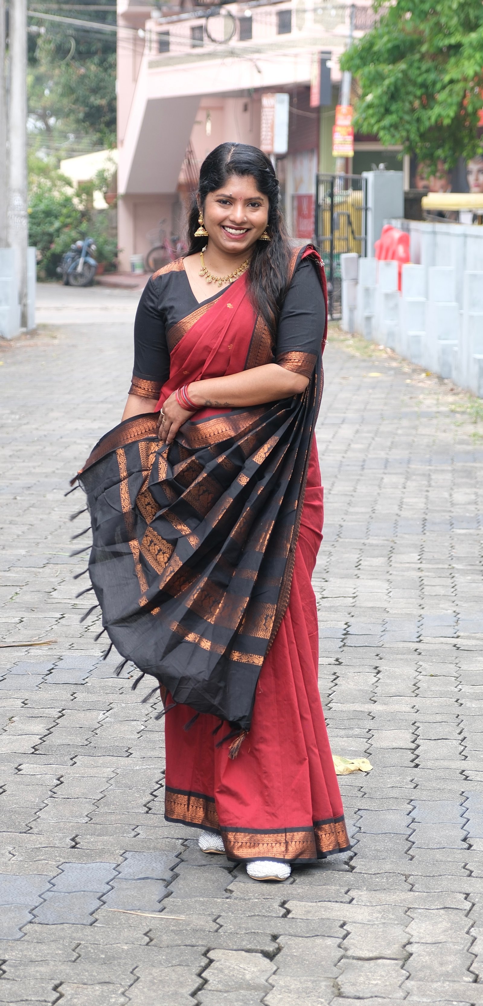 Make a powerful statement in this premium blood red saree, crafted for women who love luxury and grace. Rich colour with an elegant fall makes it a perfect choice for weddings, receptions, and festive occasions.